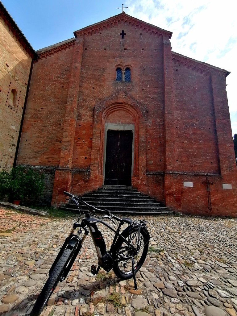 La gioia della pedalata assistita, tuttavia, non è l’unica e questa giornata a due ruote ci ha regalato tantissime emozioni e divertimento. Siamo partiti da Savigno e abbiamo raggiunto l’abbazia di Monteveglio, passando attraverso il bosco. Ammetto che mi sento più a mio agio sulle gambe, mezzo di trasporto che conosco da tanto tempo e che so gestire con maggiore disinvoltura, ed essere caduta in un fosso in modo piuttosto ridicolo, non ha contribuito a farmi rilassare.
