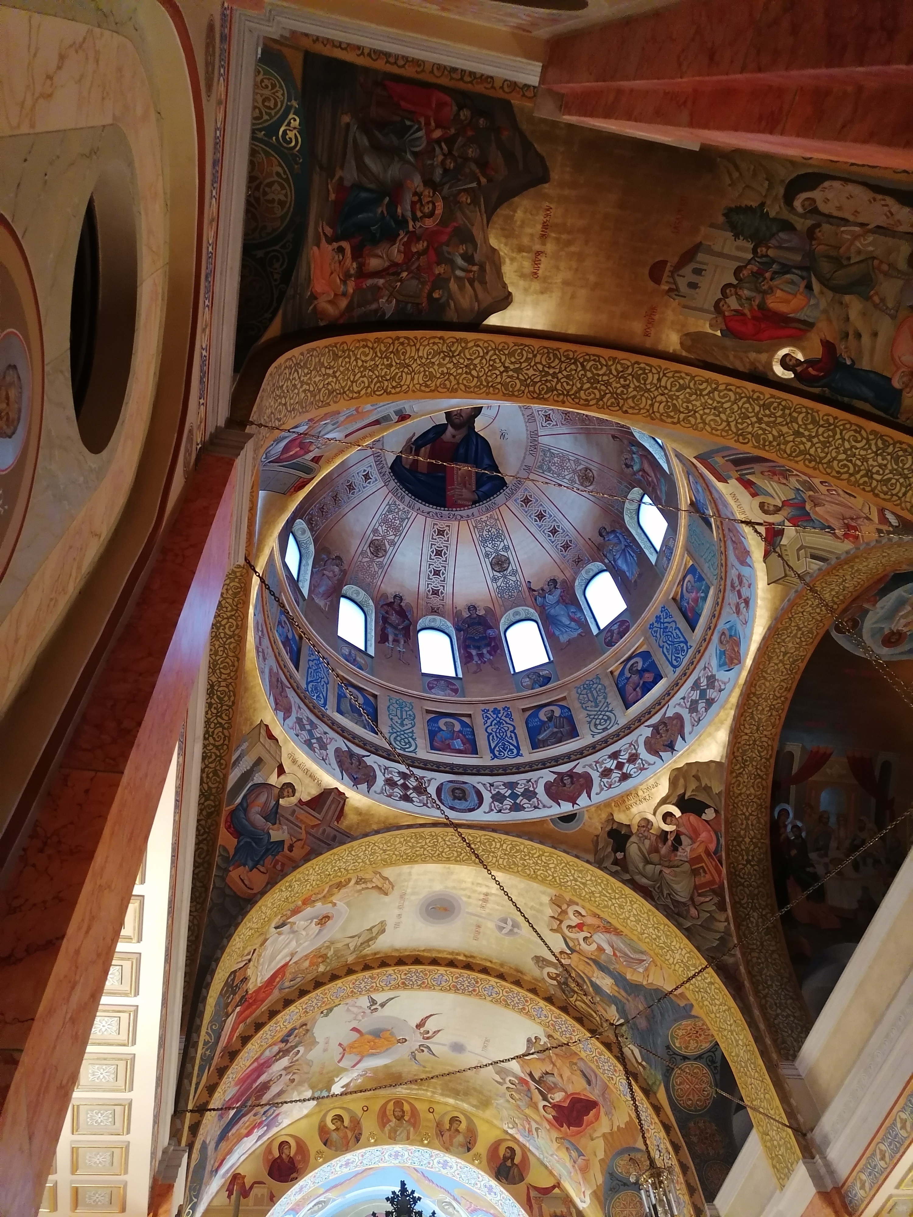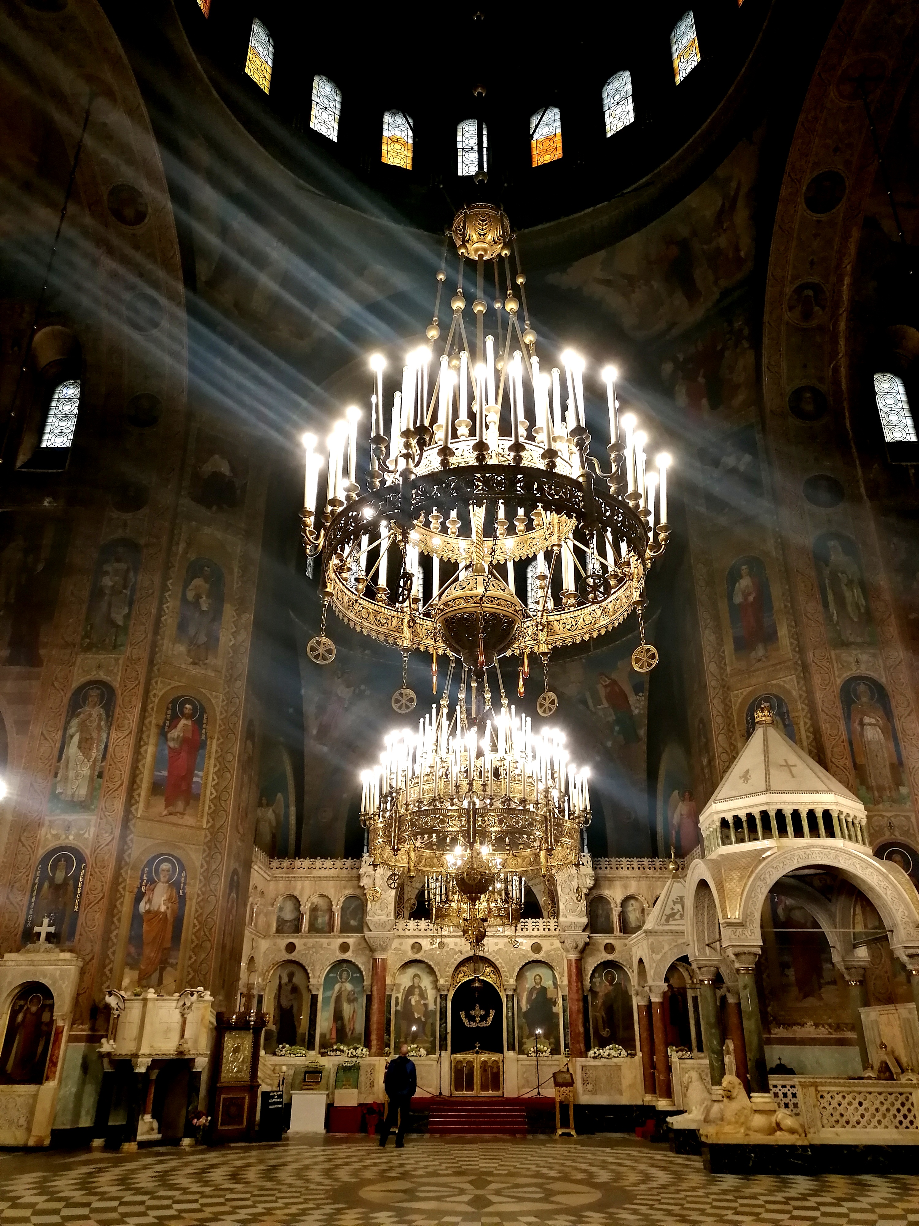 Il centro di Sofia è piccolo e si gira a piedi comodamente cosa che rende molto rilassante scoprirla: manca la frenesia delle grandi città con così tante cose da vedere da rischiare di trasformare il viaggio in una corsa su e giù per i quartieri. Qui si può passeggiare senza fretta, godersi il tempo per un tè caldo in un localino pieno di oggetti e libri, chiacchierare con il proprietario, un genovese che ha un bellissimo gatto rosso che dorme sulla poltrona e molte storie da raccontare. Di Mario racconterò un’altra volta perché questo incontro merita uno spazio a sé ma il Pesto Bistro è un altro di quei luoghi del cuore che ho sparsi in tutto il mondo. Tra un tè e una cioccolata calda, una zuppa e un po’ di banitza, una specie di torta salata con formaggio e spinaci, entriamo nelle numerose chiese ortodosse della città. Ce ne sono di grandissime e di piccole, tutte bellissime e molto suggestive. In alcune ci fermiamo un po’ per assistere alla cerimonia. I fedeli accendono sottili candele che infilano in grandi ciotole di sabbia. Una è per i morti e una per i vivi, così, osservando le persone, posso immaginare se stanno pensando a qualcuno da proteggere o a una persona cara che non c’è più. Resto in piedi e mentre la voce del sacerdote scandisce la preghiera e il coro accompagna con canti bellissimi, ammiro i meravigliosi affreschi e i grandi lampadari. La cerimonia più suggestiva è quella a cui partecipo nella chiesa russa di San Nicola, che si trova accanto alla incredibile Cattedrale di Alexander Nervsky che, sia di giorno che di sera, regala uno spettacolo degno delle grandi cattedrali delle più note città europee. Questa chiesa ricorda la basilica di San Marco di Venezia, non a caso la città ponte tra oriente e occidente.